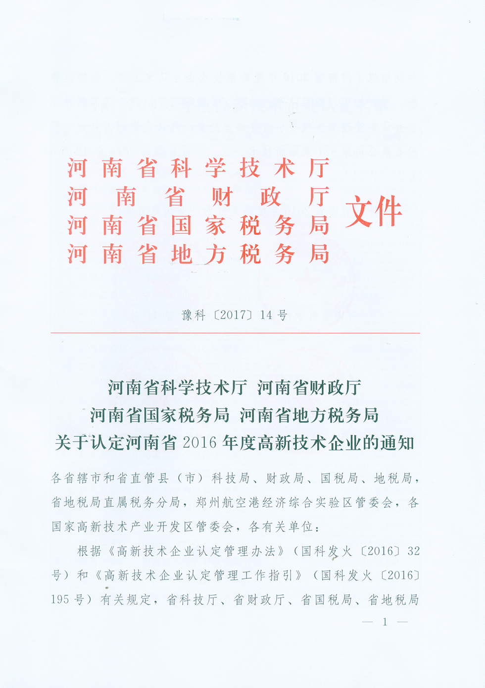 河南省高新技术企业认定管理工作领导小组办公室主办